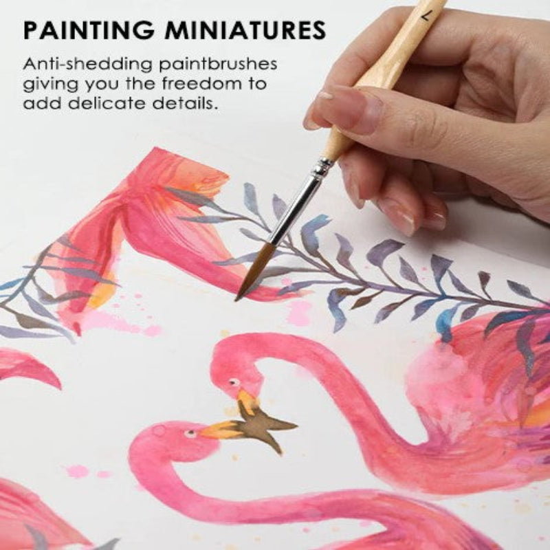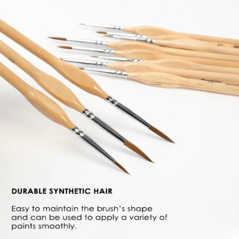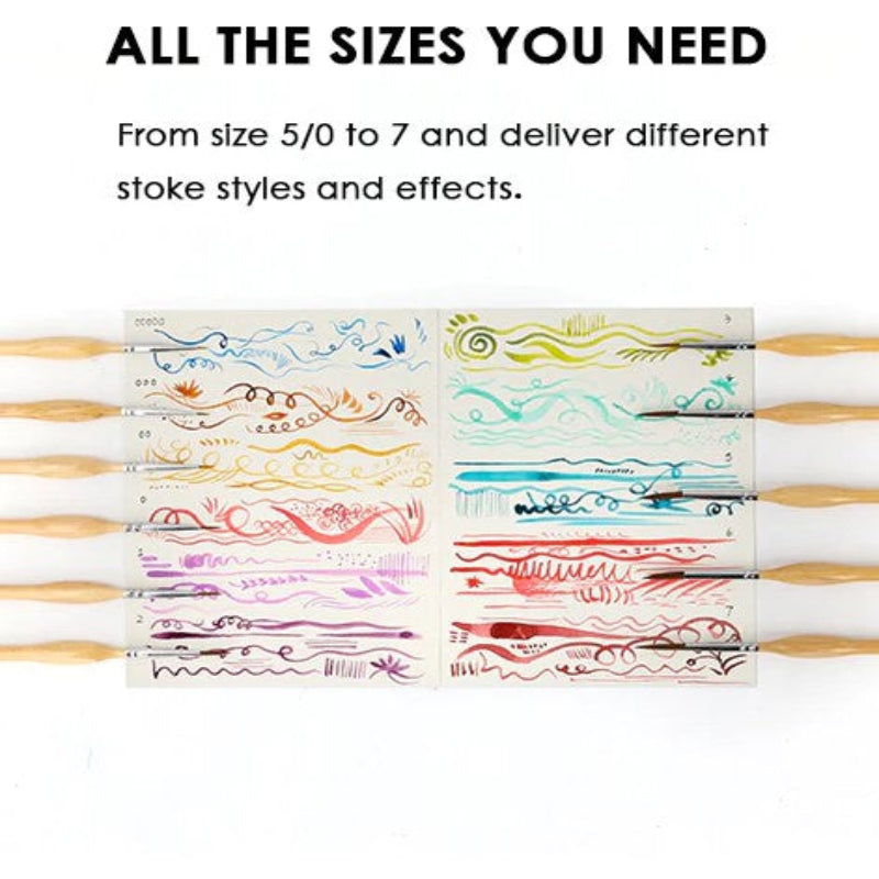 11 فرشاة بأحجام من 5/0 إلى 7 لاستكشاف جميع التقنيات، من الخطوط الدقيقة إلى التعبئة.