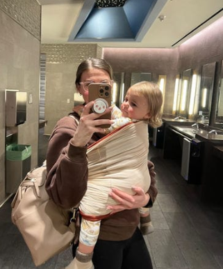 Ano, jeho nastavitelný střih se snadno přizpůsobí všem velikostem nosiče.