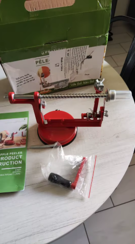 הכלי הזה מאפשר לקלף, לחתוך ולרוקן את הפירות שלך בסיבוב ידית, עם מינימום מאמץ פיזי.