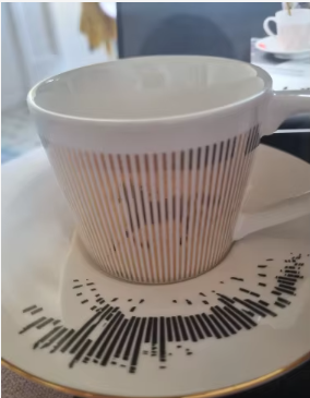 各カップは魔法の瞬間になります カップがソーサーに置かれると、アナモルフィック効果によってアートのパターンが現れます。
